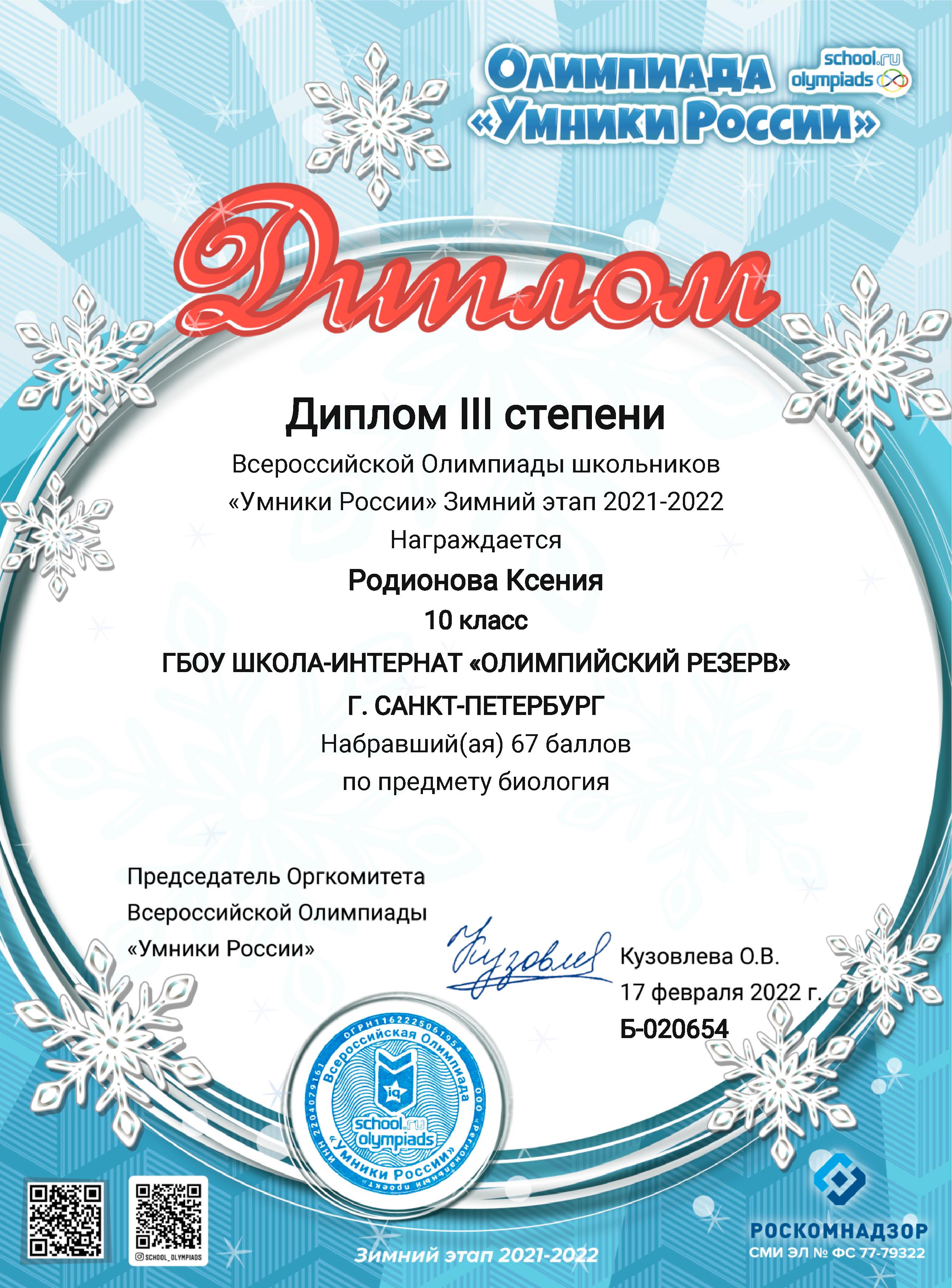 Поздравляем Родионову Ксению (10Б) и Касимову Виолетту (8Б)!