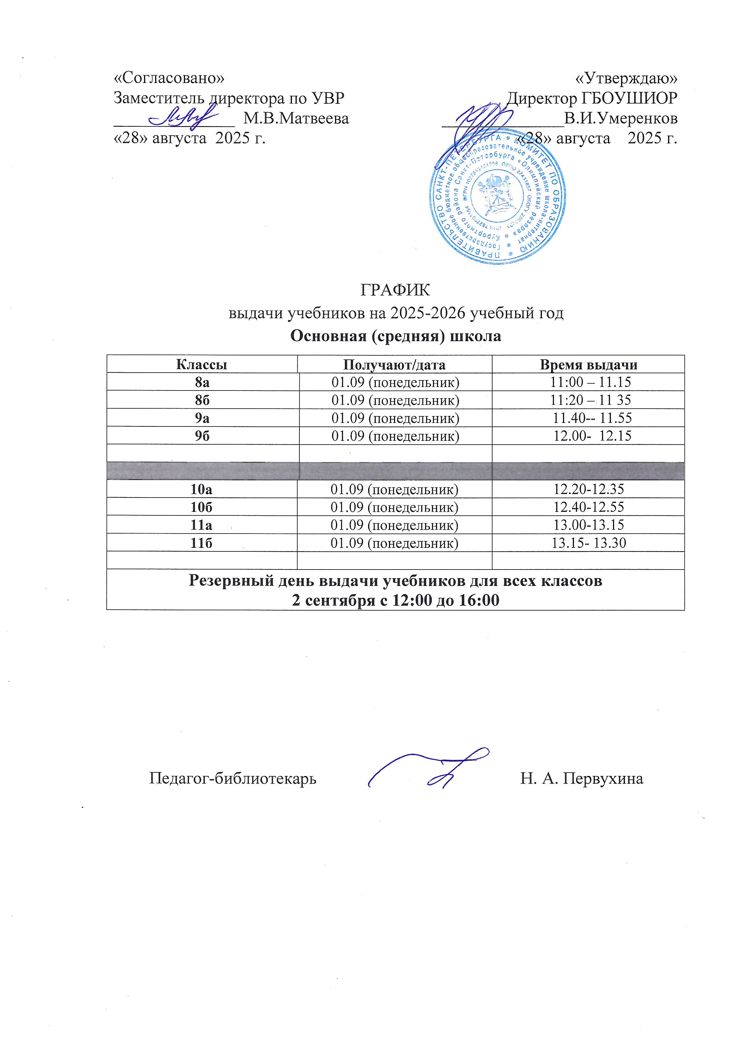 График выдачи учебников на 2025-2026 учебный год